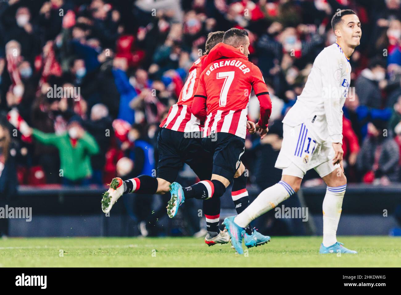 Bilbao Basque Country Spain 4th Feb 2022 Alex Berenguer 7 Of Athletic Club Celebrates His Goal With Iker Muniain 10 Of Athletic Club During The 1 4 Spanish Copa Del Rey Match Between